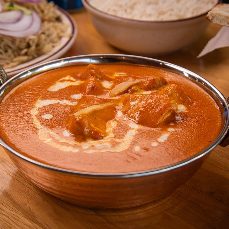 Boneless chicken with spices, yogurt, cashews, crushed red pepper