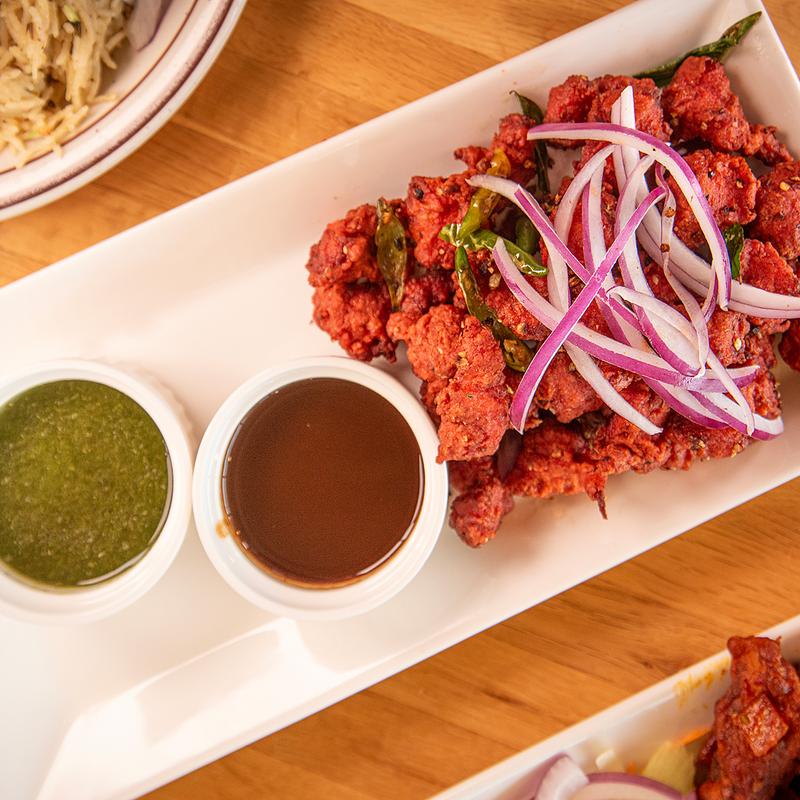 Batter-fried Paneer cubes tossed with onion, capsicum, garlic, and green chilies